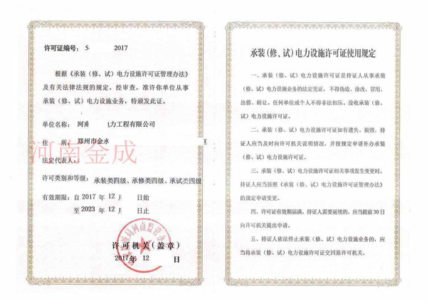 • 承裝(修、試)電力設施許可證